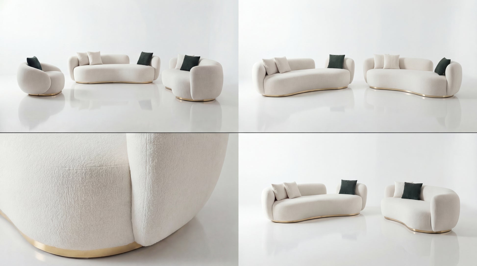 A clean, sculptural living room set defined by soft curves and a calm, modern presence. The rounded silhouette and deep, supportive seating create a relaxed, premium feel—while the minimal form makes it easy to style with side tables, accent lighting, or statement décor.