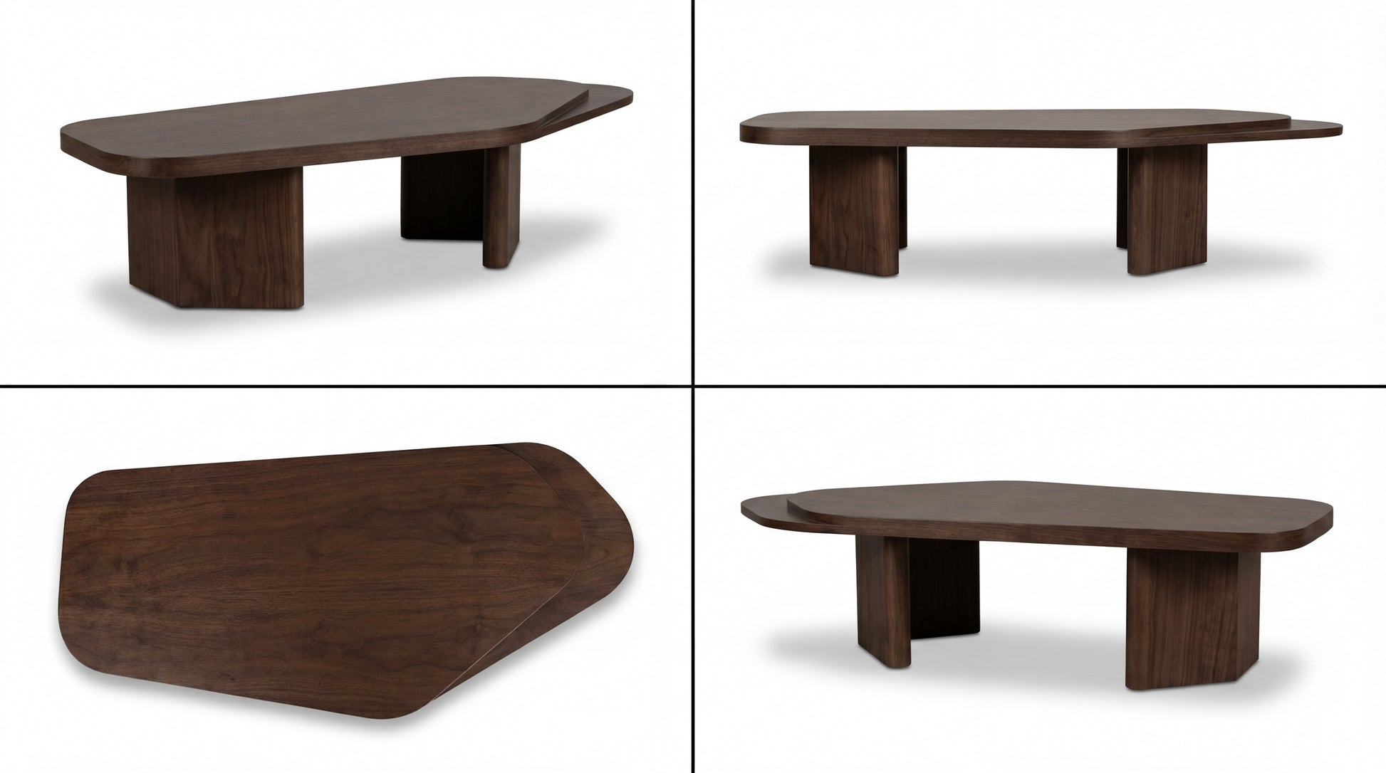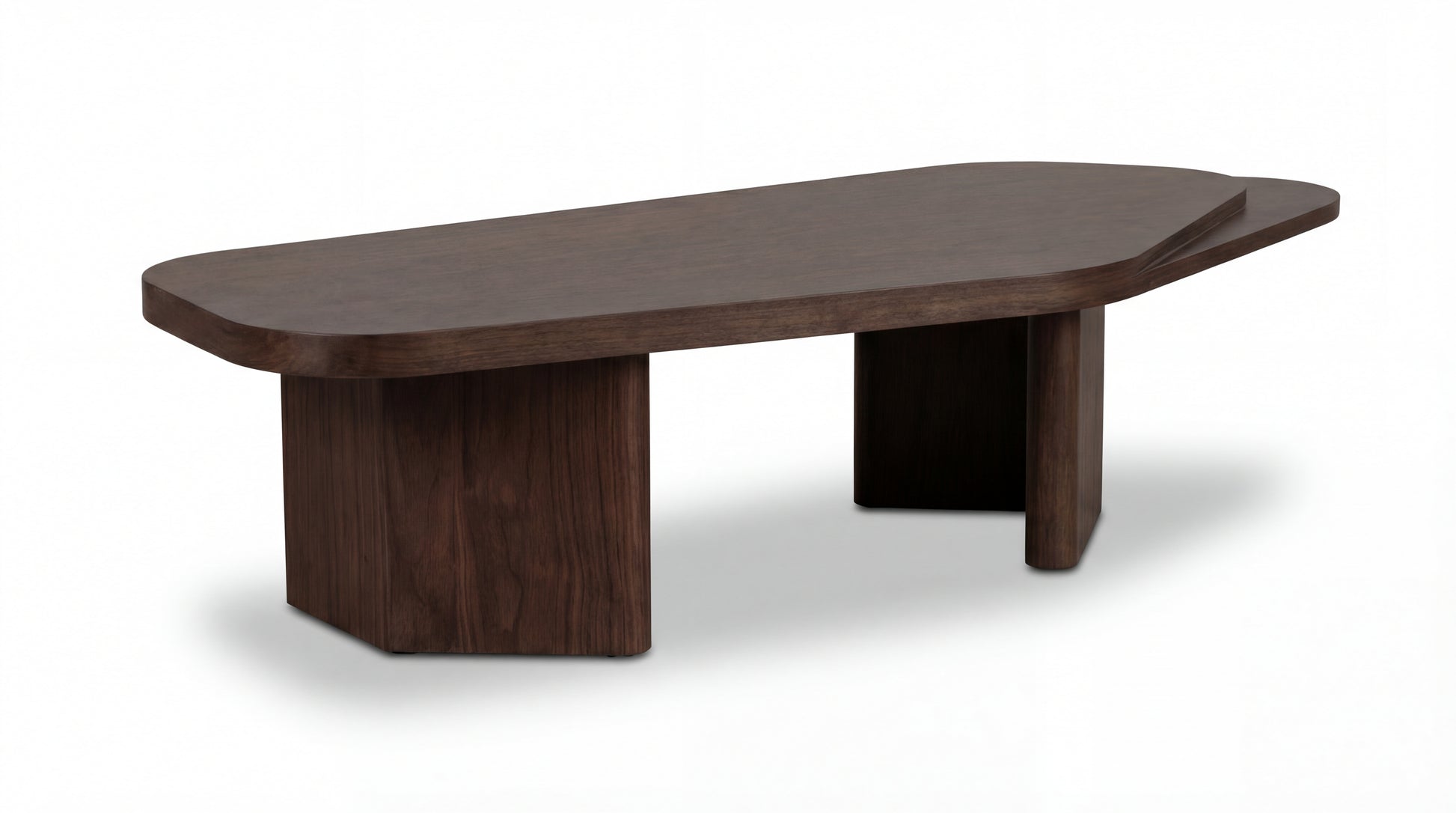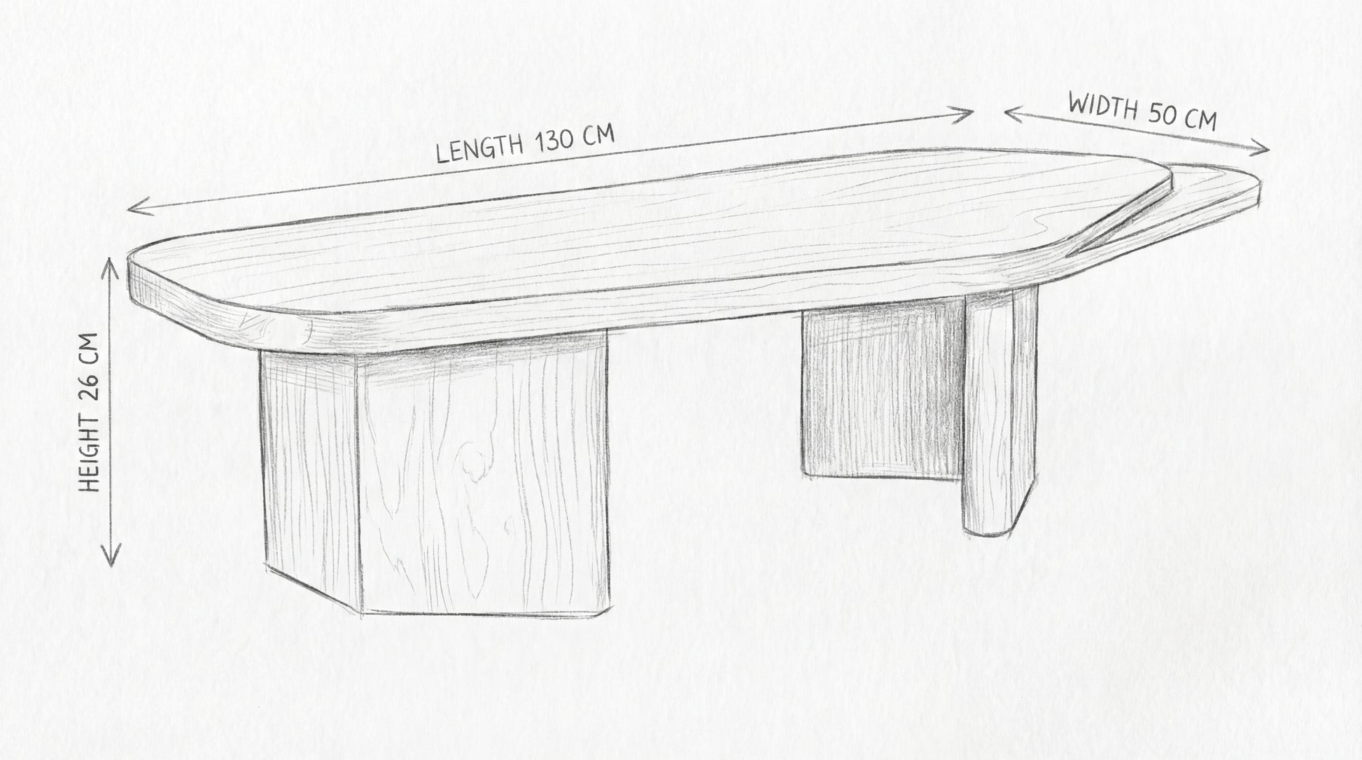 This low-profile coffee table is a sculptural statement crafted for modern living spaces. Its elongated, softly rounded top creates a clean, calm surface for everyday styling, while the layered edge detail adds subtle depth and character. Supported by bold wooden bases, the table feels grounded and architectural—minimal in lines, rich in presence.