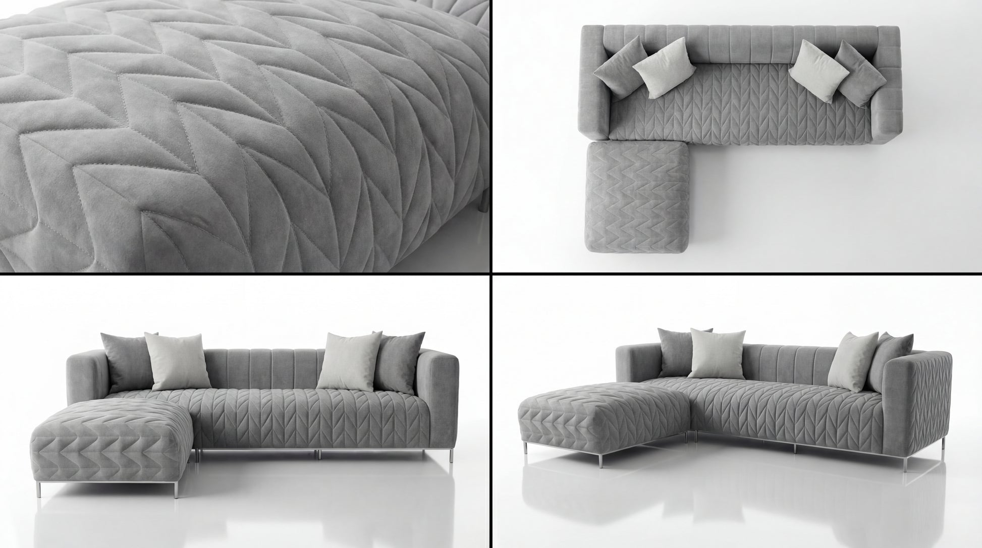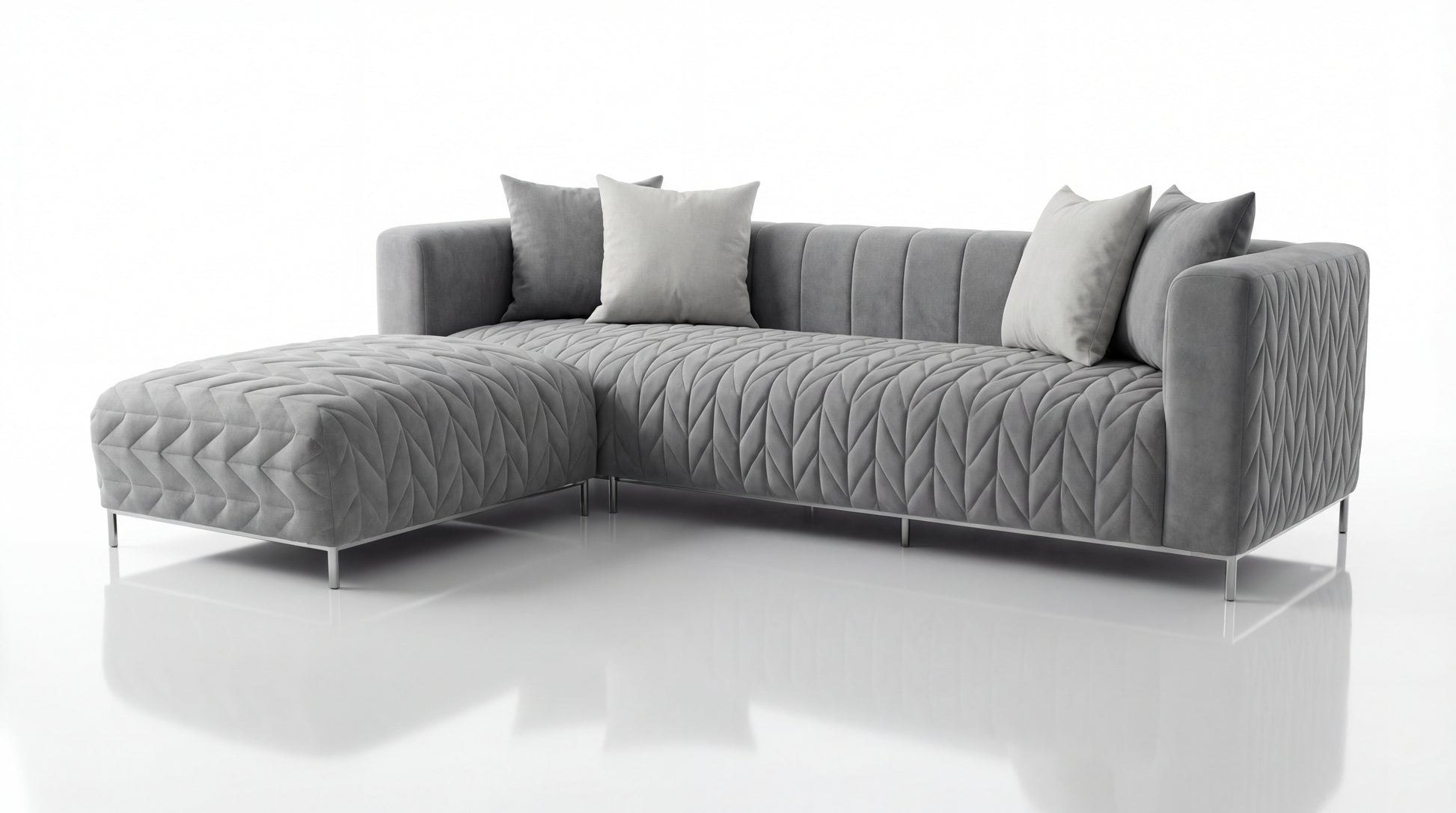 BECKHAM is a statement in calm luxury—designed for deep lounging with a clean, architectural presence. Its L-shaped composition brings two seamless pieces together, creating generous seating and an inviting chaise for everyday comfort. Finished with refined quilting and elevated by sleek metal legs, Beckham balances premium materials with impeccable craftsmanship for a look that feels modern, warm, and effortlessly sophisticated.