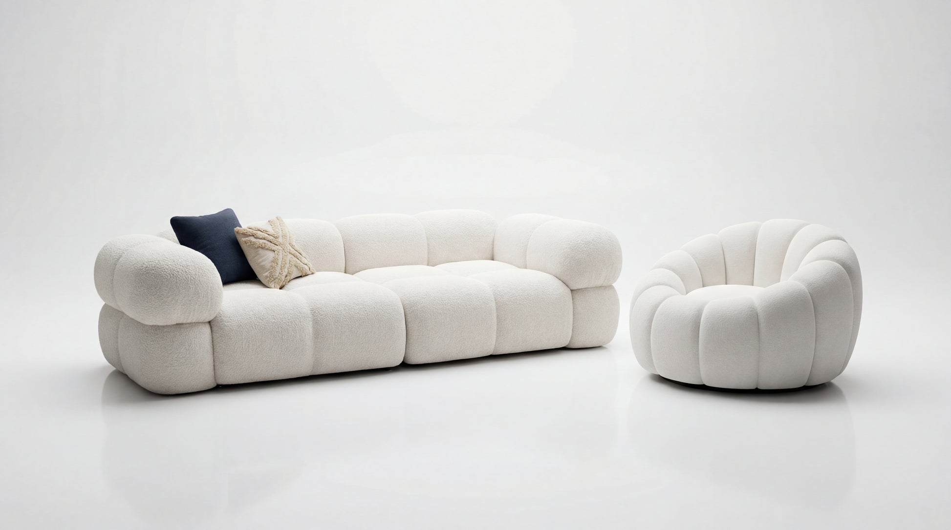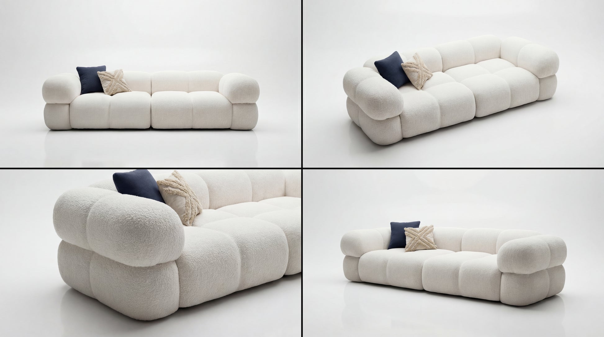 A feel-good sanctuary built around soft volume and sculptural curves. BUBBLES features a bold, cloud-like silhouette with plush, segmented cushioning that invites you to sink in and unwind. Its playful form adds lightness to the space, while the deep, supportive seating keeps the comfort premium and practical for everyday living.