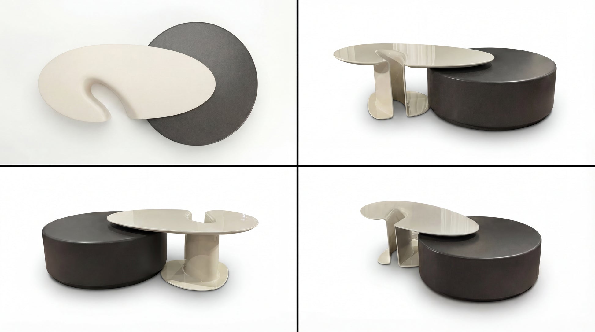 ECLIPSE Duo is a sculptural nesting coffee table set crafted from premium fiberglass, designed to feel like modern art in the center of your living space. The flowing, wave-like top glides over a bold circular base, creating a striking contrast of light and shadow—soft curves against a grounded form. Smooth, seamless, and highly durable, ECLIPSE Duo is made for contemporary interiors that value statement design and clean simplicity.