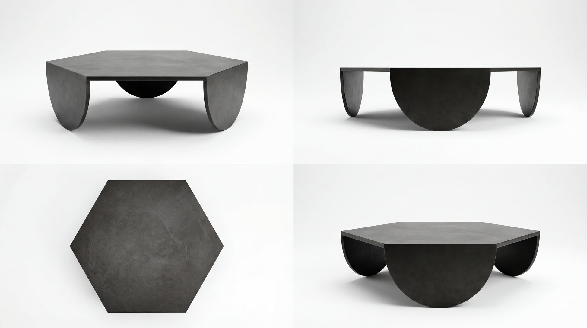 This hexagonal coffee table is a bold sculptural centerpiece designed to anchor the room with a clean, architectural presence. Its faceted top feels modern and refined, while the curved side panels create a soft, grounded silhouette. A central spherical element adds depth and visual intrigue, giving the piece a gallery-like character that elevates contemporary interiors.