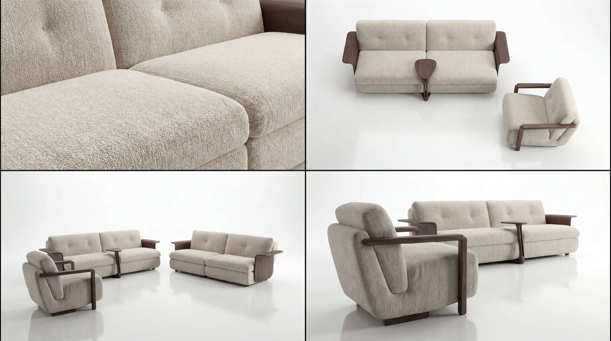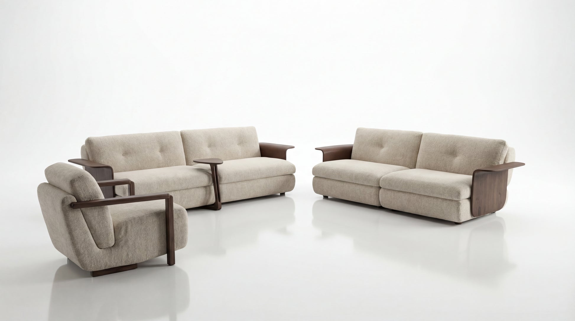 Designed for everyday living, Lignora offers generous, supportive seating with a clean, structured presence—perfect for spaces that value comfort, craftsmanship, and a quietly bold statement. The integrated side details add functionality and character, making the set feel curated, intentional, and effortlessly sophisticated.