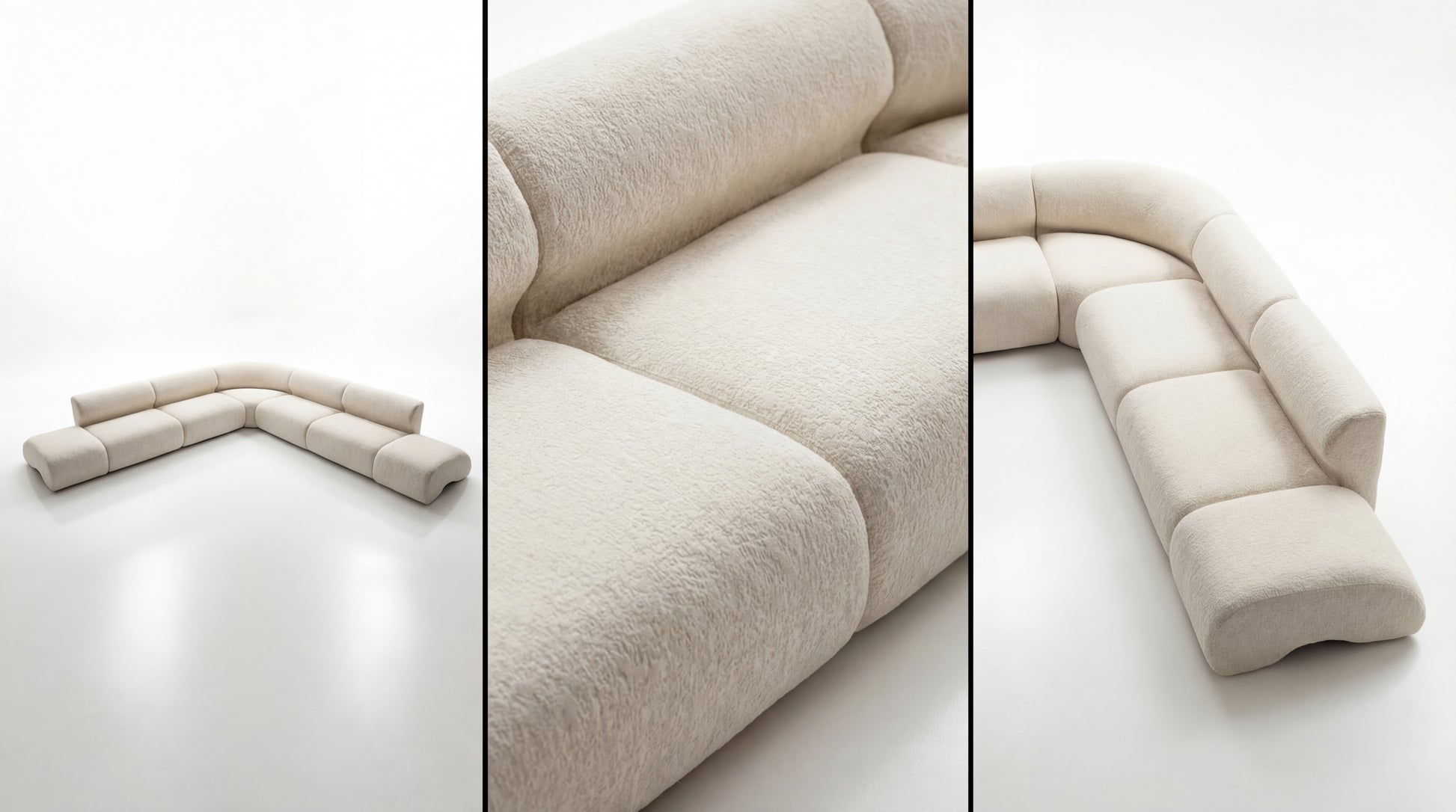 LUNERA turns the living room into a sanctuary of refined simplicity. Named after the moon’s gentle glow, its curved, low-profile silhouette feels calm, sculptural, and quietly luxurious. Wrapped in a soft, textured upholstery, Lunera is designed to invite lingering conversations and effortless lounging—elegant in form, soothing in spirit.