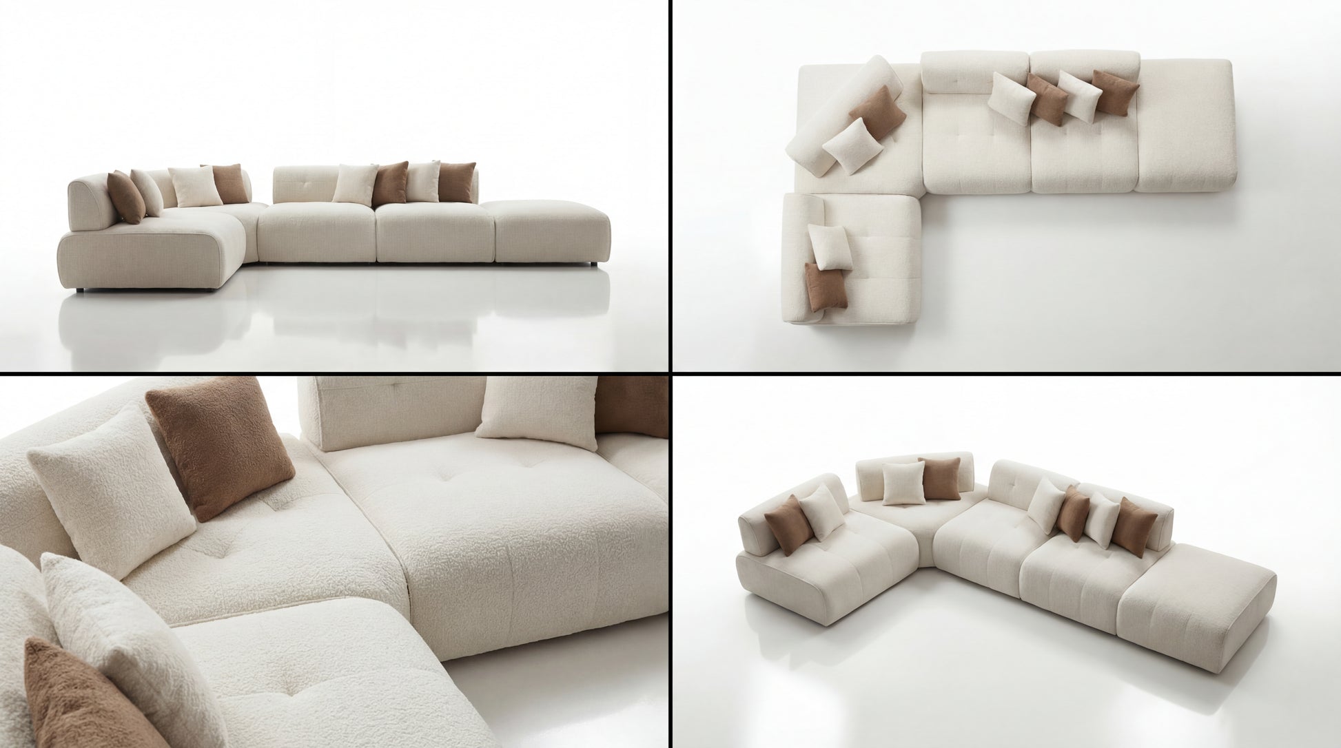 A refined modular sectional defined by clean geometry and an effortlessly relaxed presence. Built from generous 110 × 110 cm blocks, it creates a low, expansive lounge that feels calm, modern, and quietly luxurious—ideal for open-plan living and laid-back hosting. Soft, sculpted volumes and a minimal silhouette keep the look elegant while maximizing comfort.