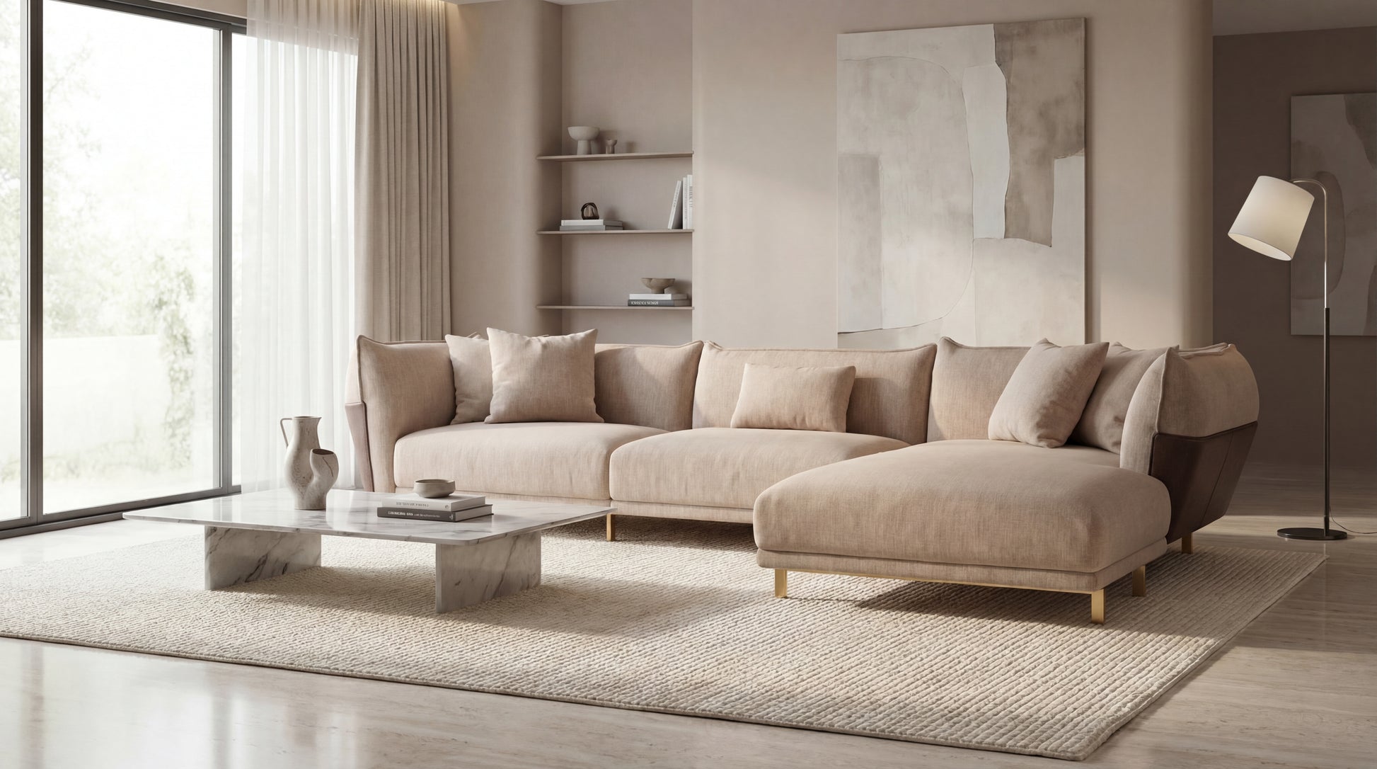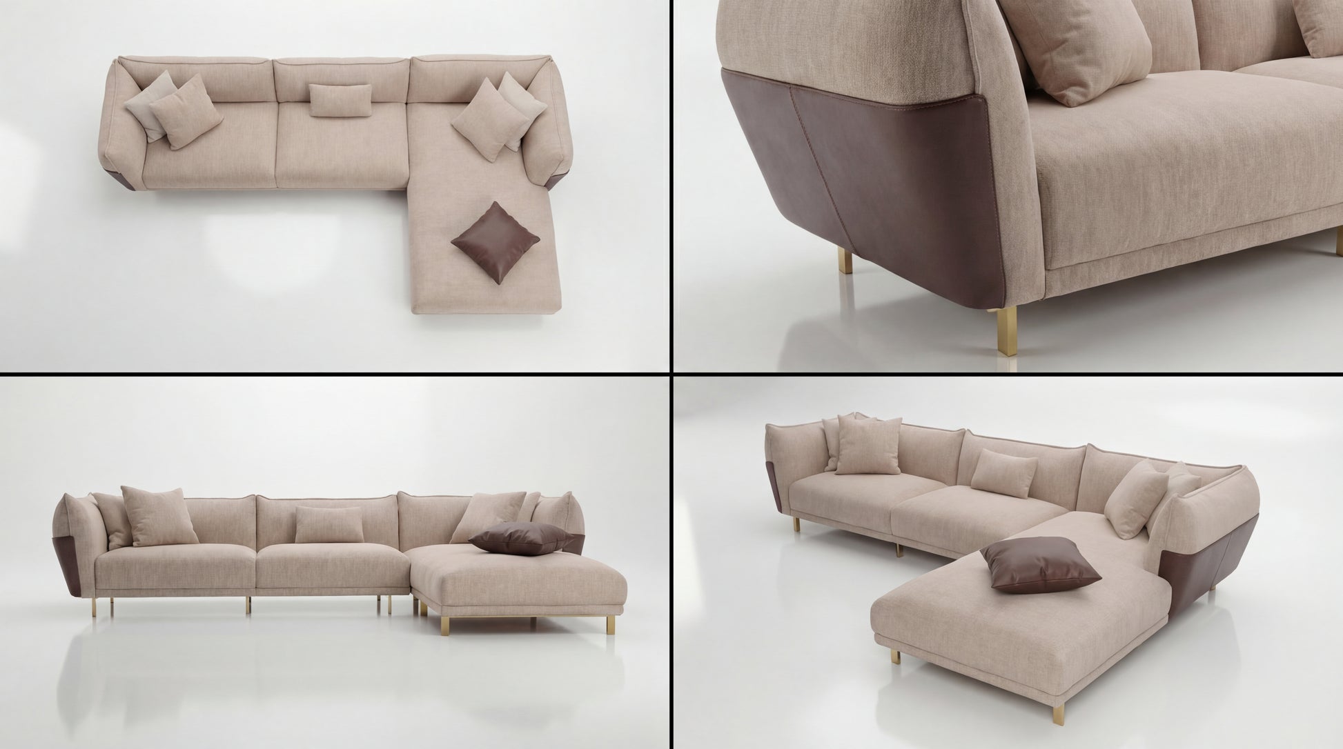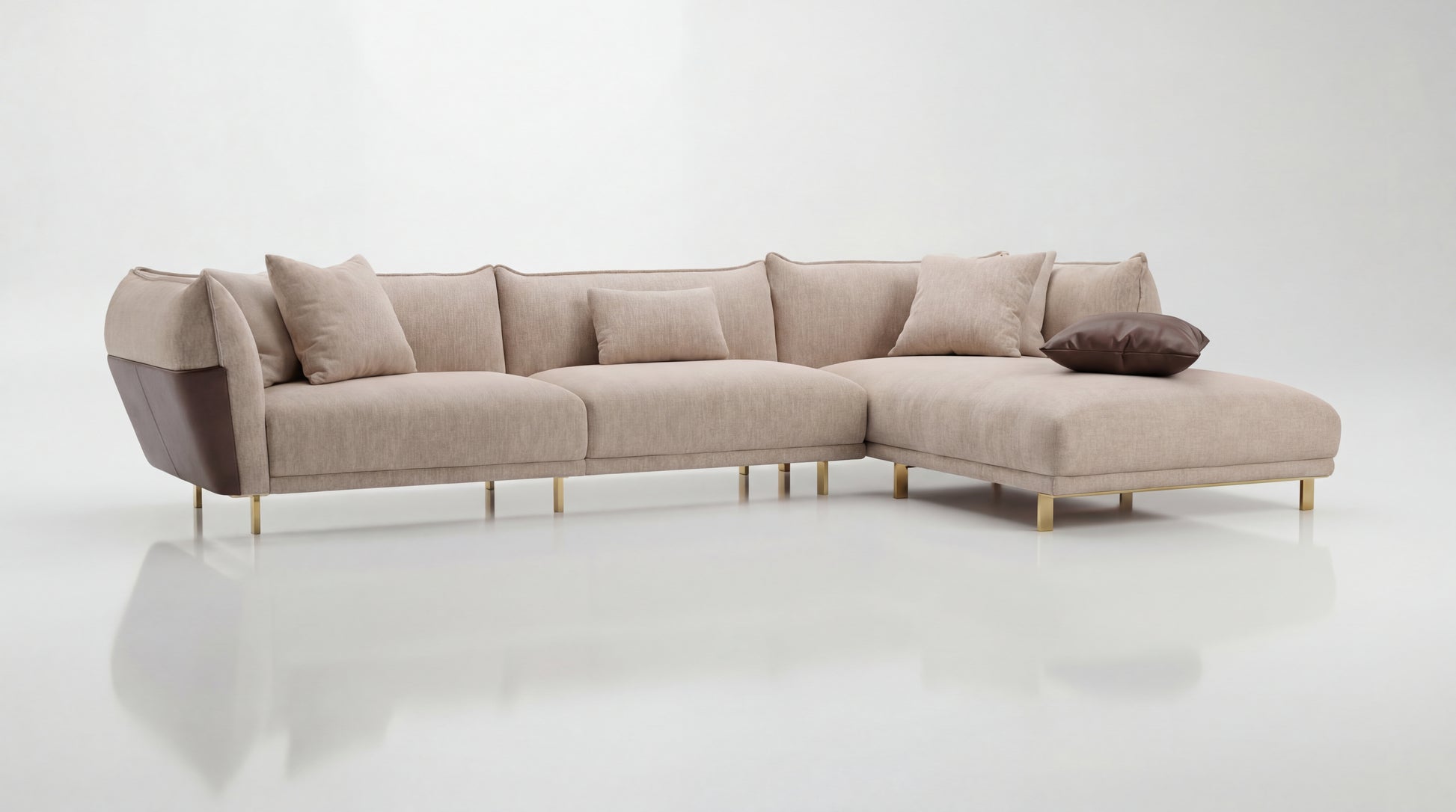 ODETTE is an elevated take on everyday comfort—an L-shaped silhouette refined with soft proportions, tailored lines, and a quiet sense of luxury. Upholstered in a warm neutral tone and finished with a distinctive side detail, it’s lifted on sleek metal legs for an airy, modern presence. Designed for relaxed lounging and effortless hosting, Odette brings calm sophistication to any living space.