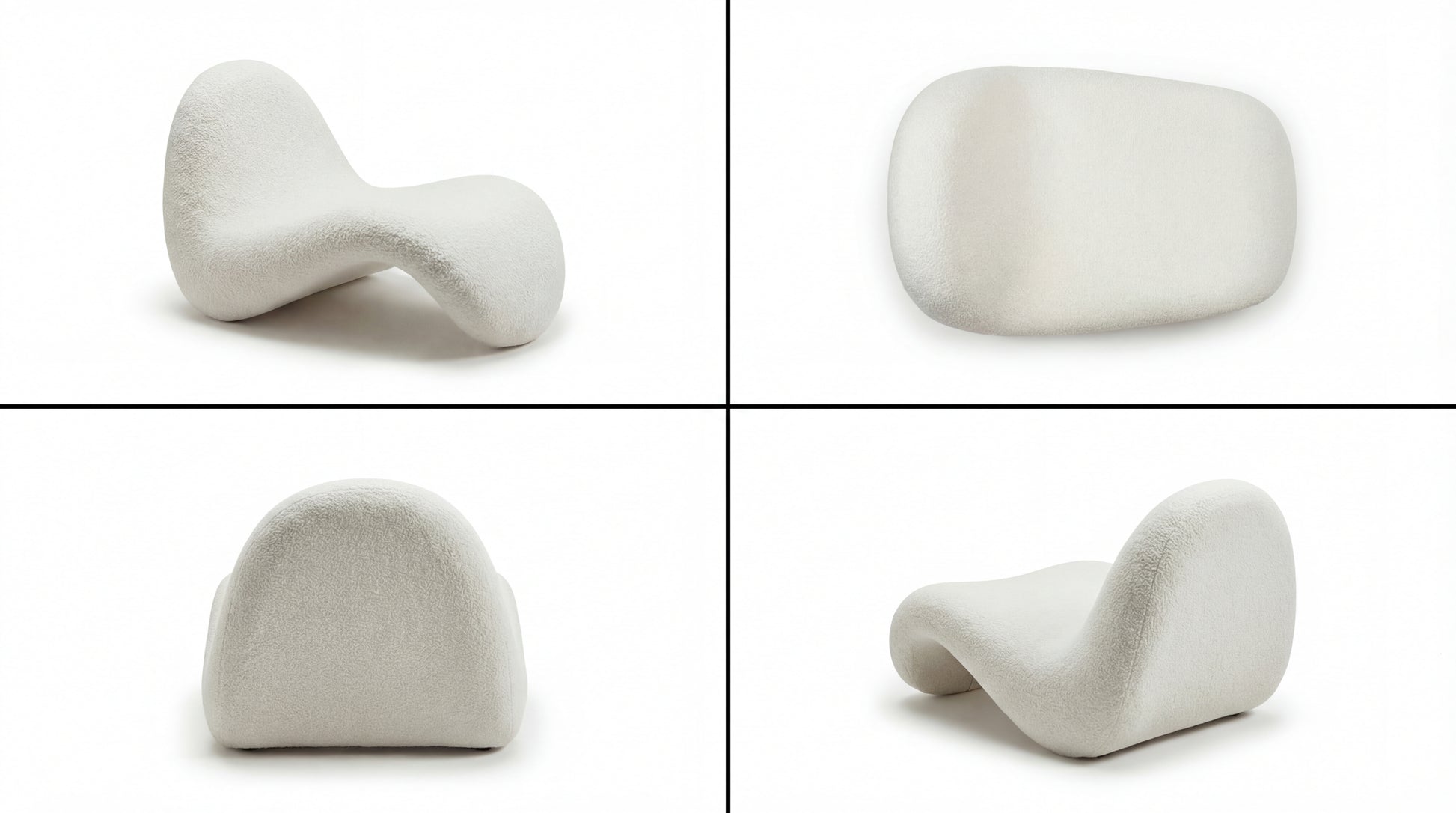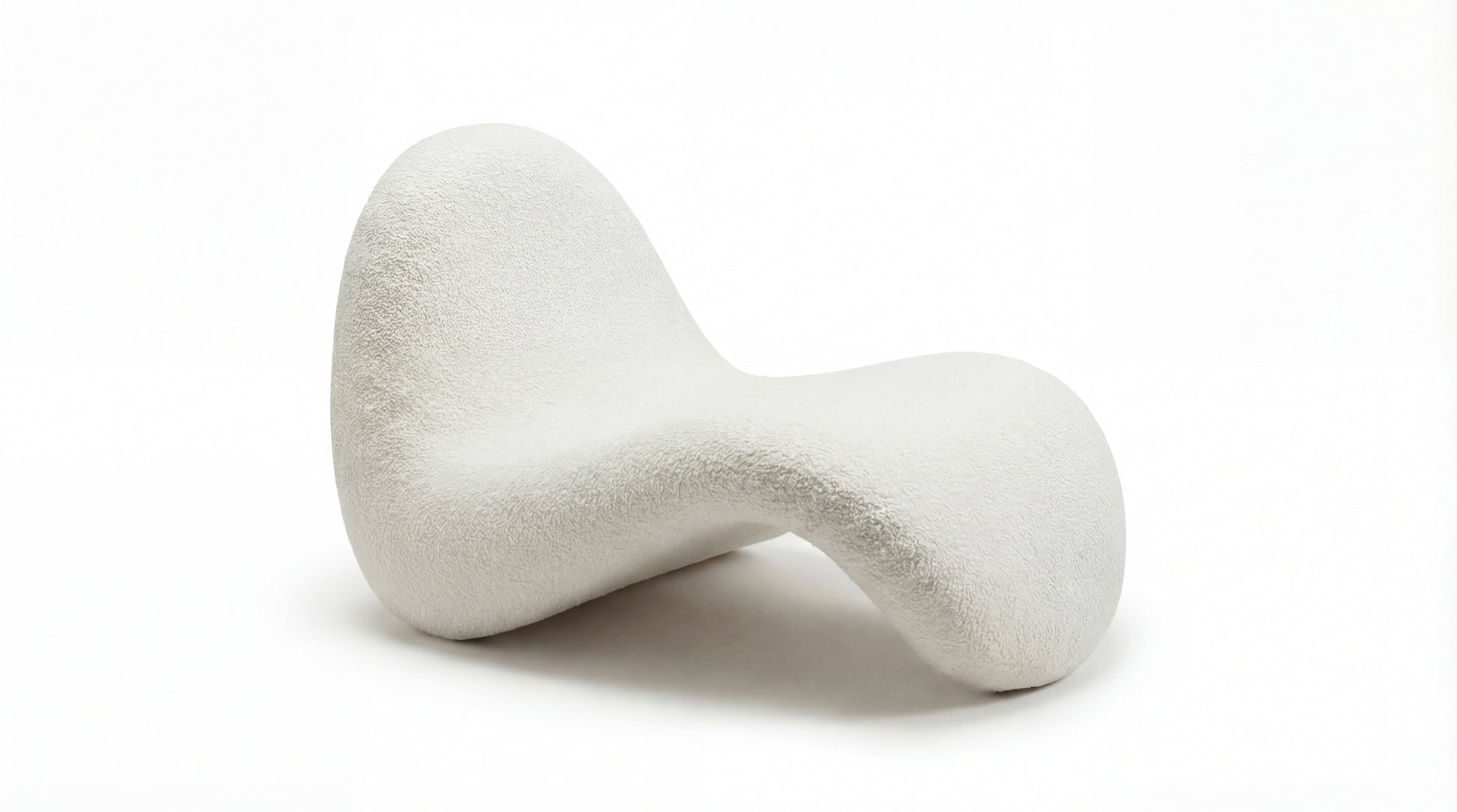 A sculptural lounge chair defined by fluid, organic curves and a seamless, monolithic silhouette. Designed to feel like a soft “formed” volume, it offers a naturally supportive seat with a relaxed backrest—perfect as a statement accent in living rooms, bedrooms, or reception corners. Upholstered in a rich off-white bouclé with a tactile texture, it brings warmth and quiet luxury to minimalist and contemporary interiors.