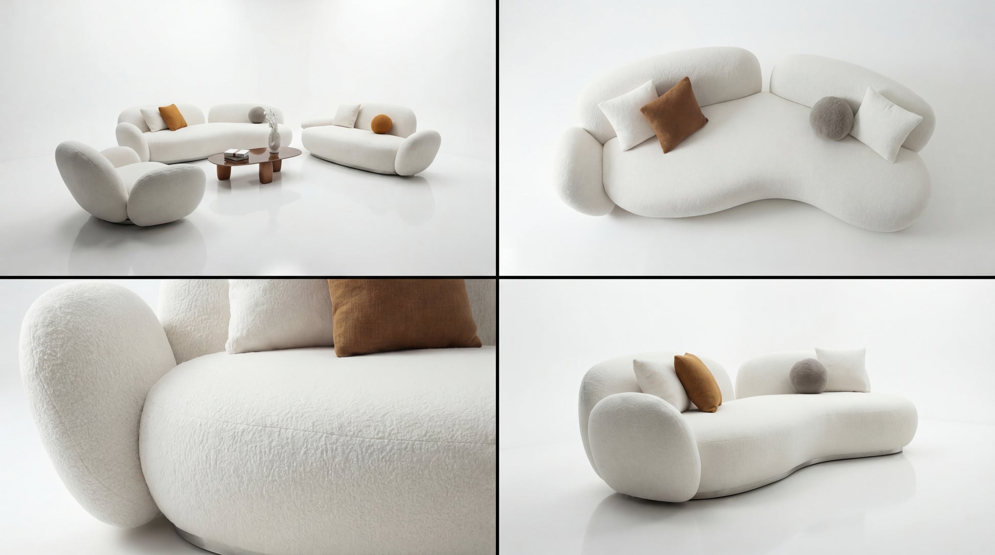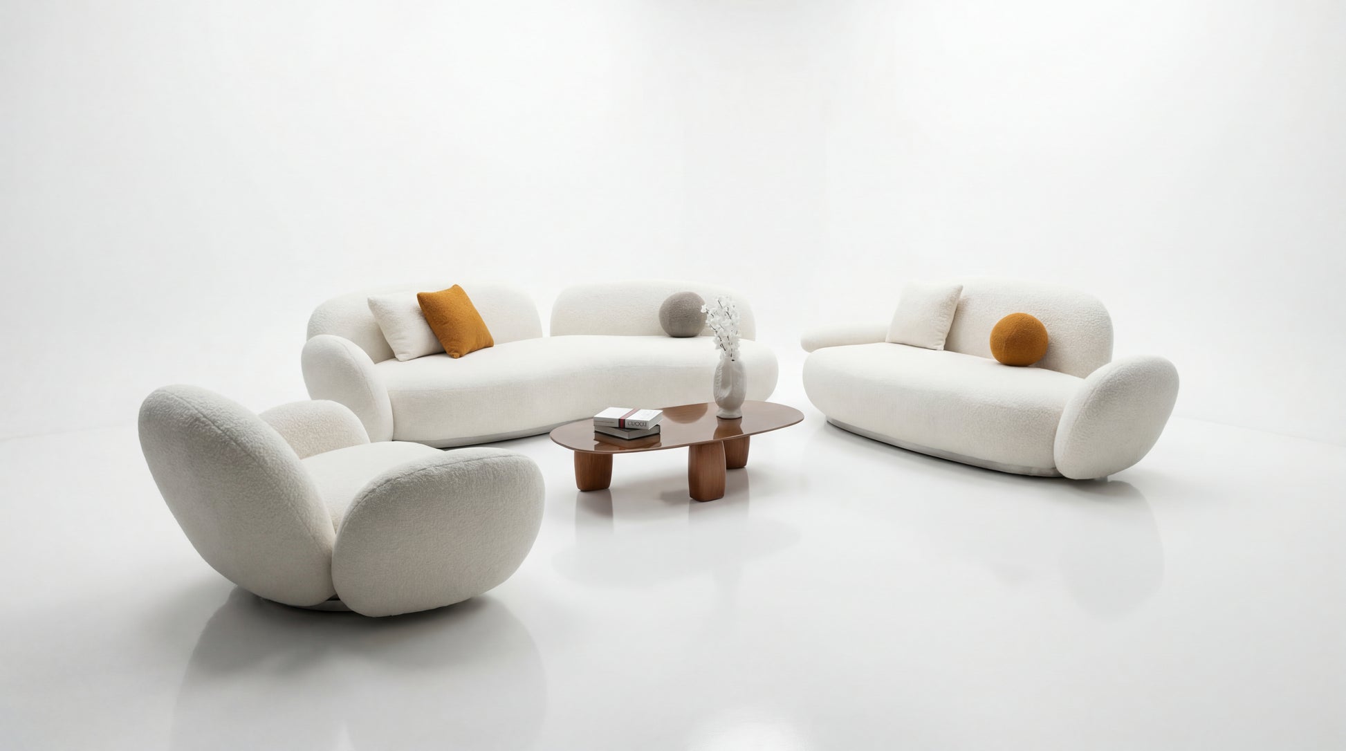 Imagine a living room defined by effortless elegance—with an unexpected silhouette and a subtle bohemian soul. This set balances refined proportions with a free-spirited softness, creating an atmosphere that feels warm, inviting, and distinctly personal. Designed to elevate everyday comfort, it brings a calm sense of freedom to the space—uncluttered, expressive, and quietly luxurious.
